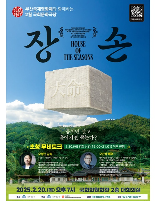 2월 국회문화극장에서는 2024년 9월 개봉해 3만 관객을 돌파한 <장손>을 상영합니다. 영화 상영 후에는, 오정민 감독과 오만석 배우를 초청하여 작품 제작의 비하인드 스토리와 영화적 의미를 나누는 무비토크GV를 진행하며, 예약 신청을 통해 관람하실 수 있습니다.