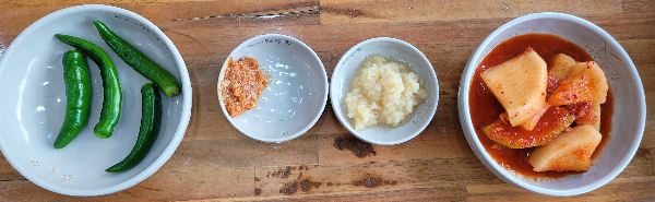 고추, 쌈장, 다진마늘, 깍두기가