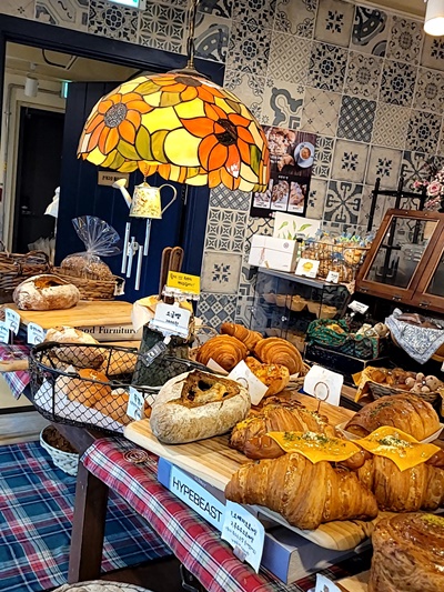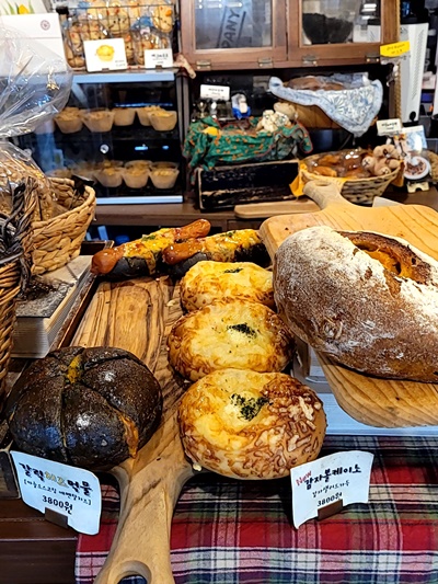 빵 진열대는 그리 넓지 않은데, 빵 종류는