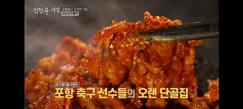 두번째 메뉴는 포항에서 모르는 사람이 없다는 맛집으로 이동국이 추천해준 곳이였는데요. 생삼겹 주물럭이 유명하다고 해요.