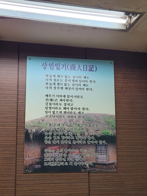 가게 한쪽 벽에 걸려있는 상인일기.
