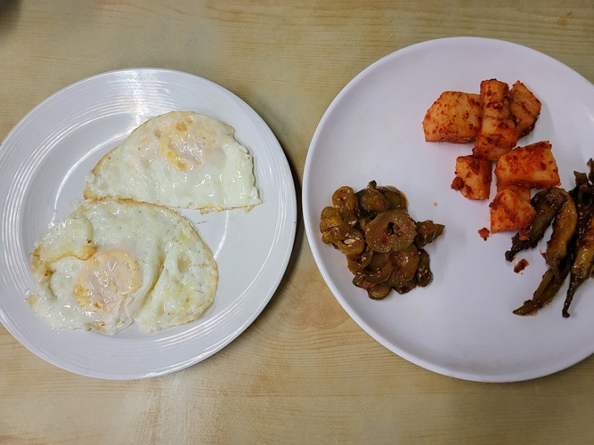기본반찬과 계란후라이가 먼저 나옵니다.