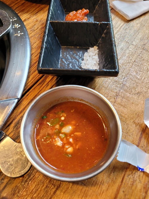 각종 소스와 반찬들도 맛있었지만, 전 소금이 제일 좋더라구요. 영국황실에서 쓴다는 말돈 소금으로 염도가 낮고 감칠맛이 좋았습니다. 폭립은 치즈와 소스를 찍어먹고 뜯어먹는 재미는 있었지만, 많이 먹긴 힘들어요. 속이 느끼해져서 제 입맞엔 삼겹살과 목살이 더 맛있었어요.