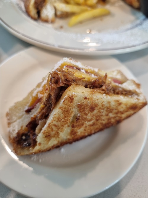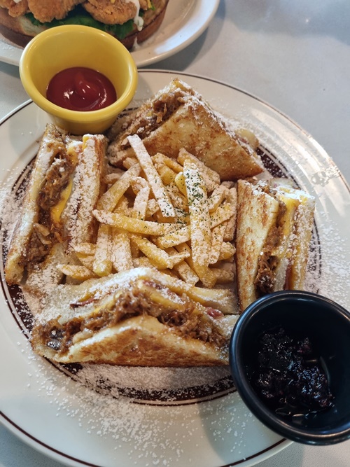 폴드포크 몬테크리스토는 베니건스 몬테크리스토 메뉴랑 비슷할거라 생각을 했는데 완전히 다른 메뉴네요. 바삭한 빵안에 짭쪼롬한 고기 슈가파우더의 달달한 맛의 조합이 좋았어요.