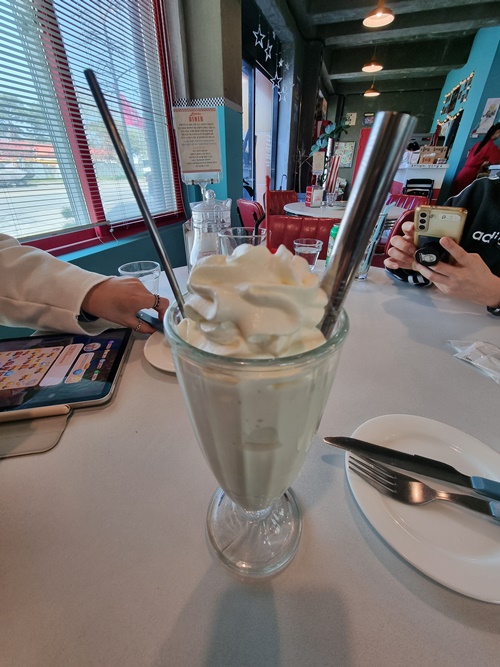 음식이 나오자마자 느낀 건, 팬케이크가 정말 두툼해요. 왠지 메뉴들과 어울릴꺼 같아서 주문한 바닐라 쉐이크는 많이 달지 않아서 좋았어요. 그래도 마무리는 탄산이 쵝오!